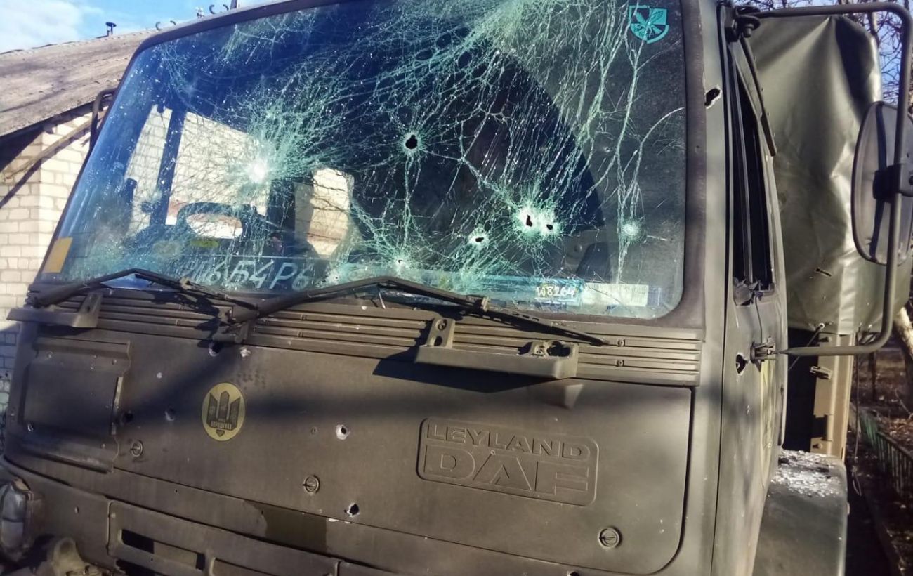 Пятый президент Петр Порошенко показал фронтовые фотографии грузовиков DAF после обстрелов.