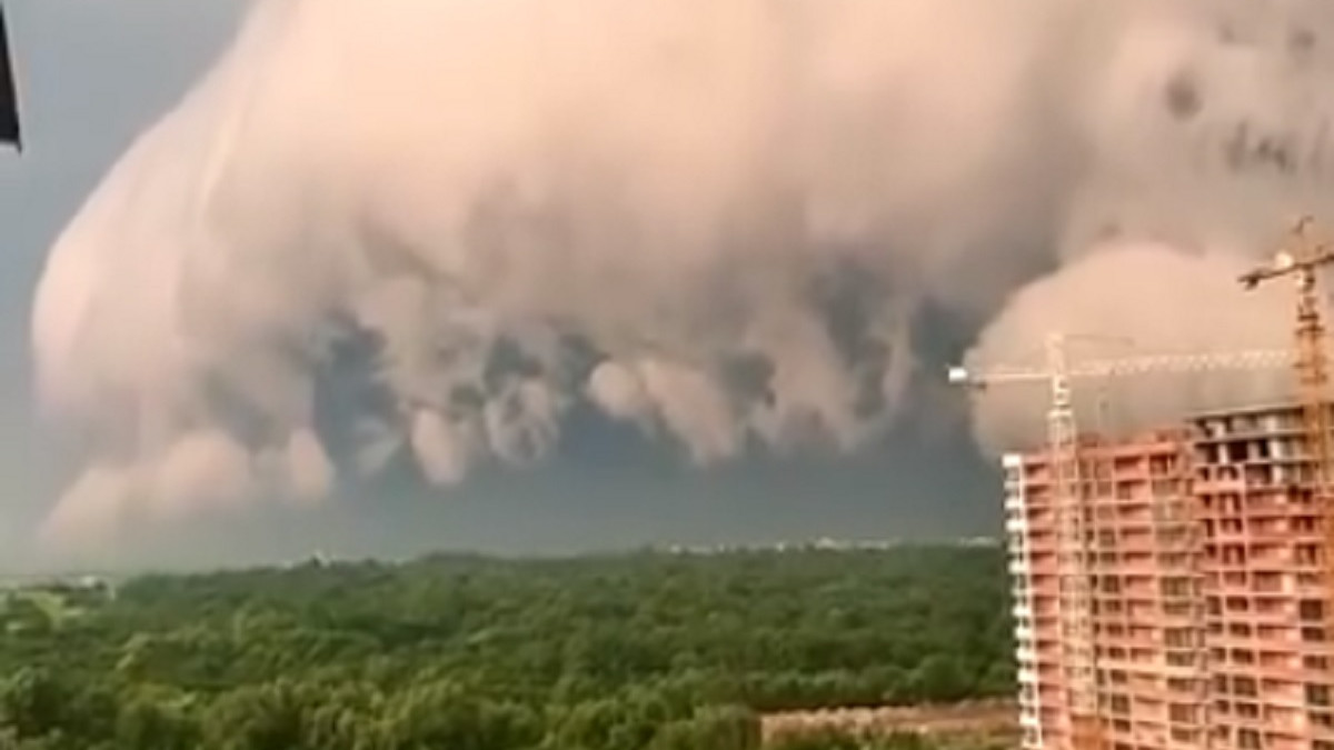 Львов накрыло грозовым облаком, которое с земли кажется перевернутым цунами, катящимся по небу