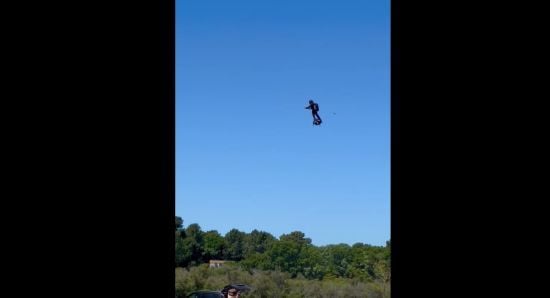 Испытание нового летательного устройства на основе реактивного ранца завершилось неудачей, пилот упал в озеро с 15-метровой высоты.