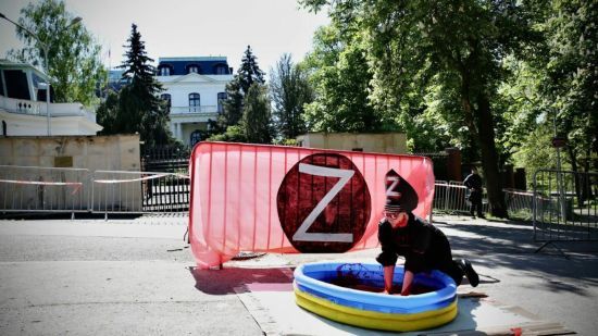 Активистка в кокошнике искупалась в "крови" украинцев, которую пролили россияне.