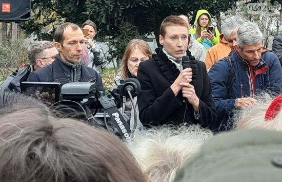 В городе антивакцинаторы собрались на площади.