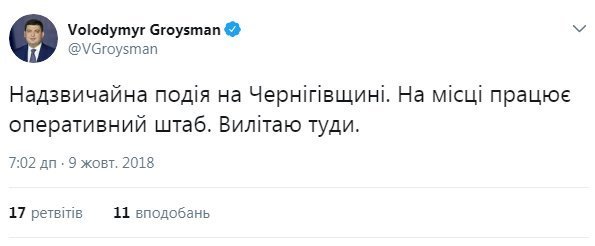 Владимир Гройсман срочно вылетел в Черниговскую область